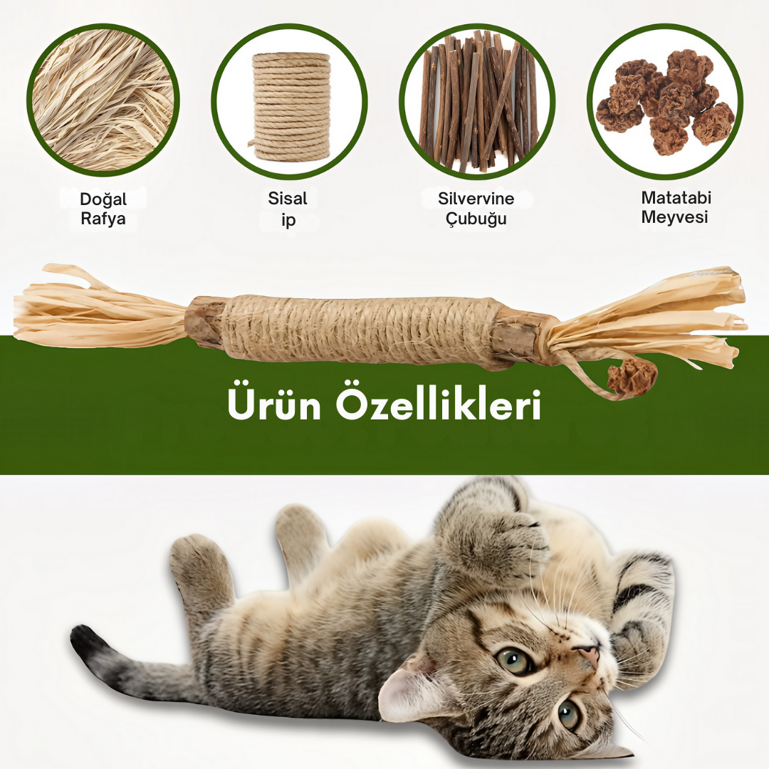 • Çubuğun doğal aroması,kedinizin avcılık ve oyun içgüdüsünü harekete geçirir.